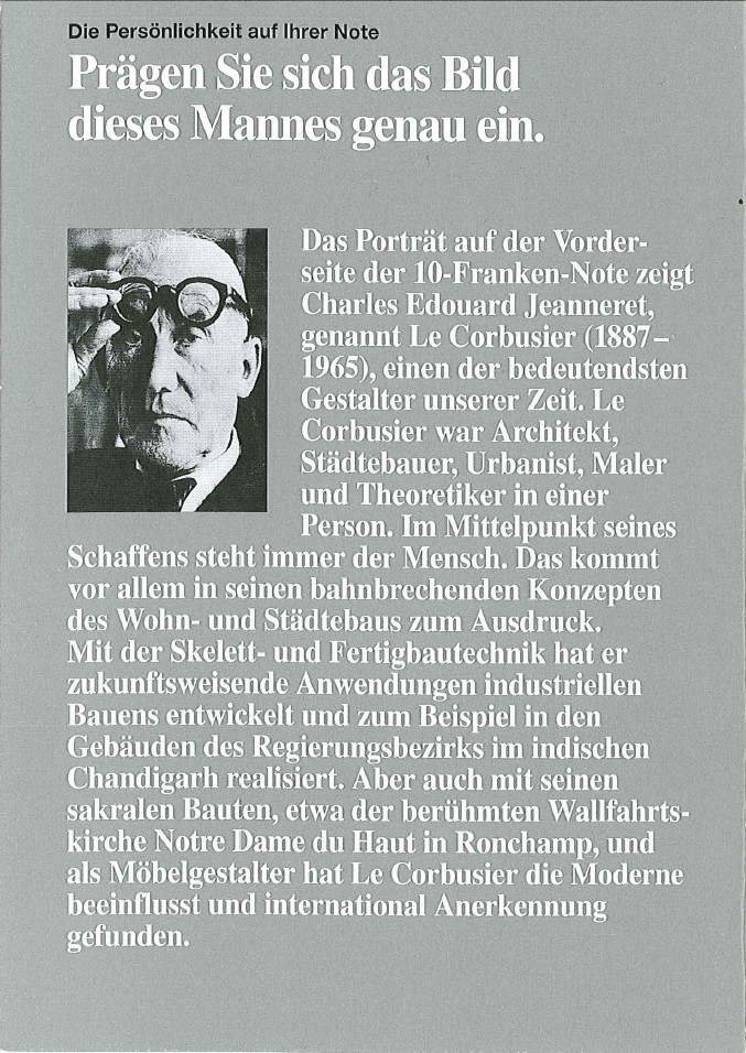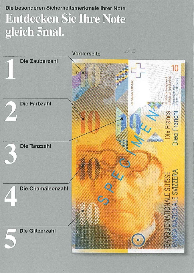 Flyer sur le nouveau billet de 10 francs Suisses (en Allemand)
